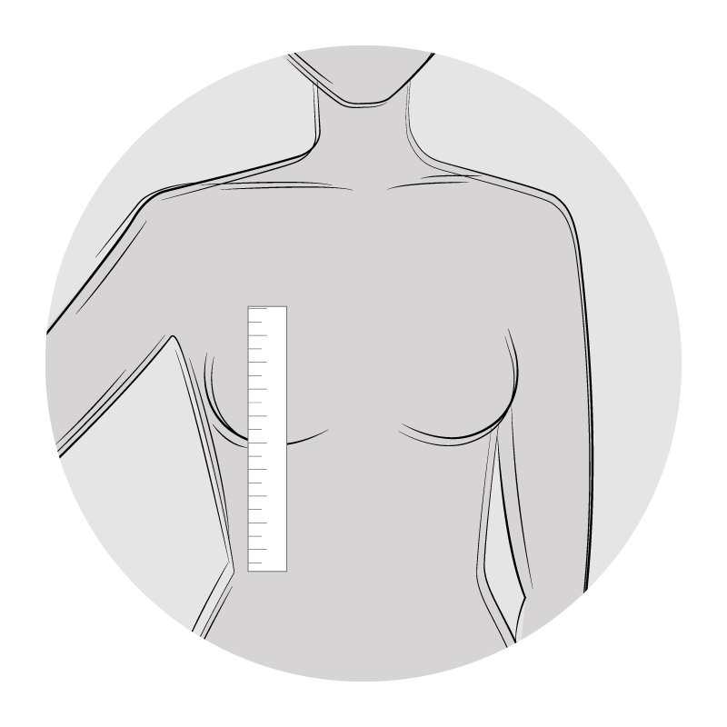 Coloca el extremo del metro donde empieza tu pecho y mide hasta debajo de este, como muestra la imagen.